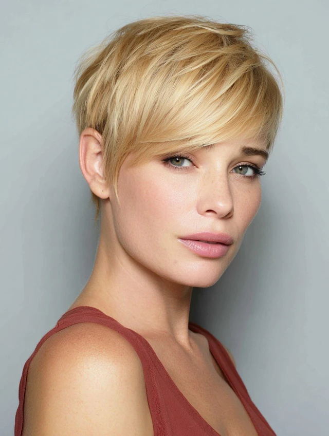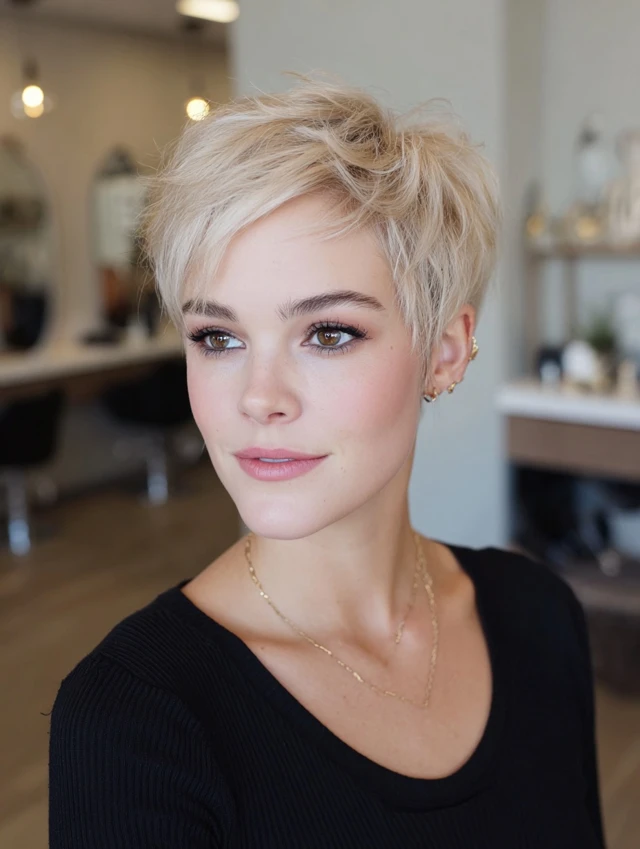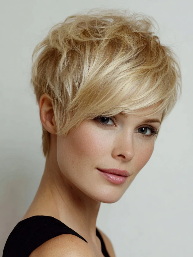 A pixie removes weight while layers add lift, making fine hair appear fuller and more dynamic.