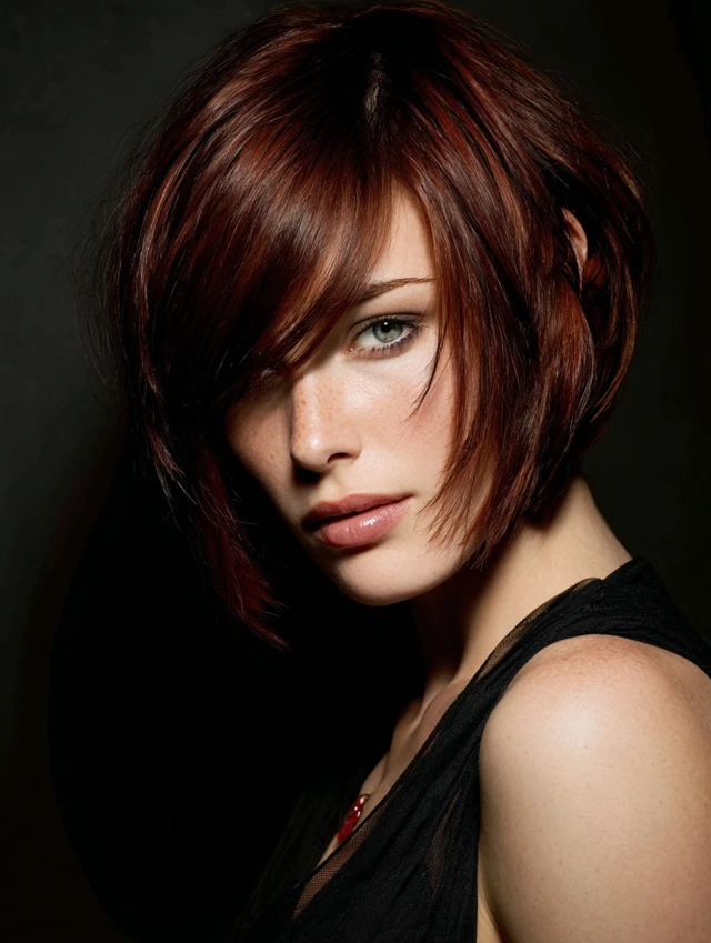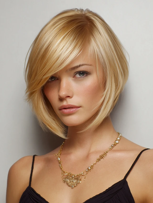 A sleek, sharply angled bob gives structure and sophistication, perfect for a clean, modern profile.