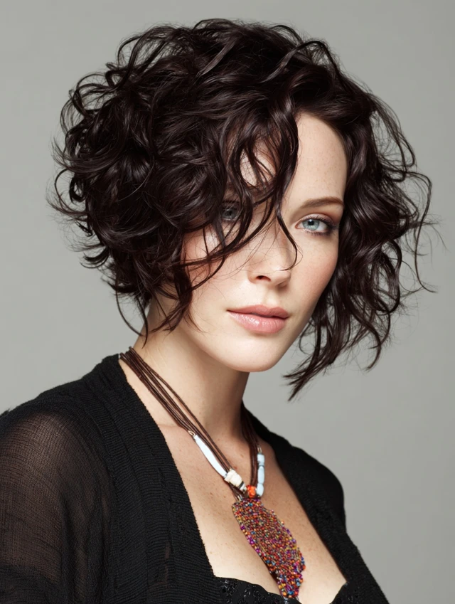 Curls bring volume and personality, while the asymmetrical cut gives shape and definition.
