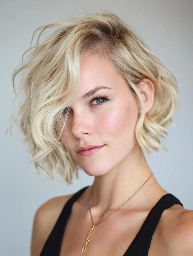 Soft waves enhance the angled cut, adding movement and volume while keeping the style feminine and fresh.