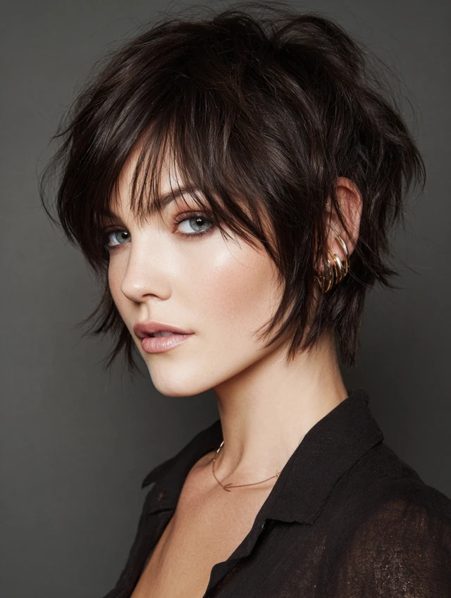 - Layered bixie with feathered ends