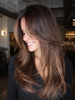 - Blow-dry layers to the side for a soft, flowing effect.