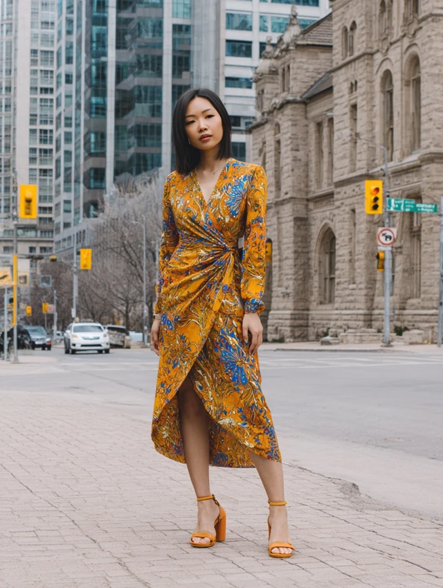 - Accessories: Wooden bangles, woven bags, gold hoops, or a modern belt to elevate the look.