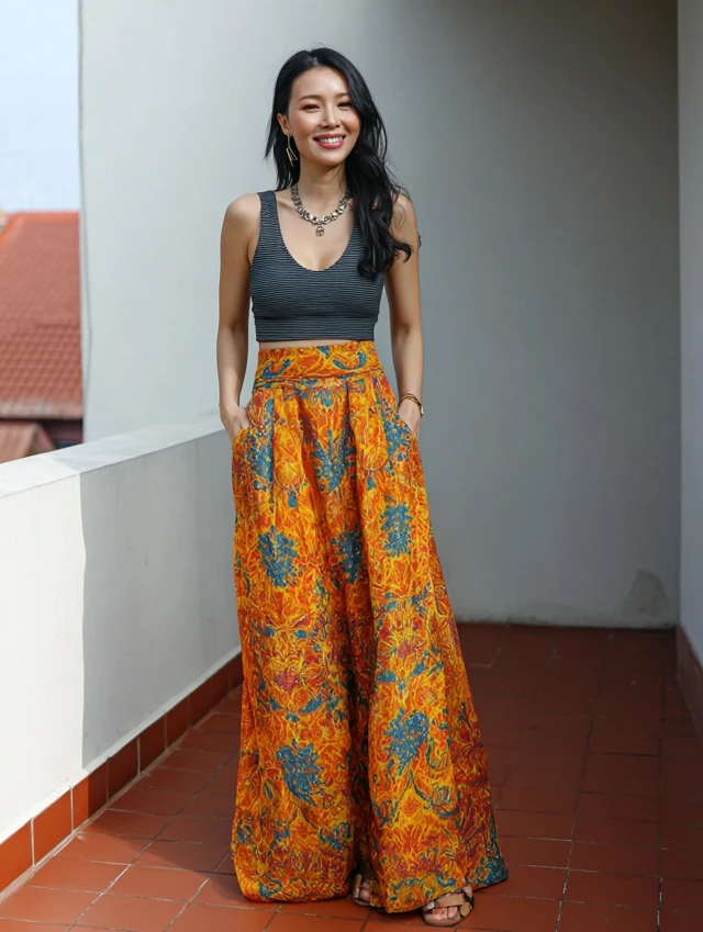 - Foundation: A Batik skirt, wrap dress, or tailored pants.