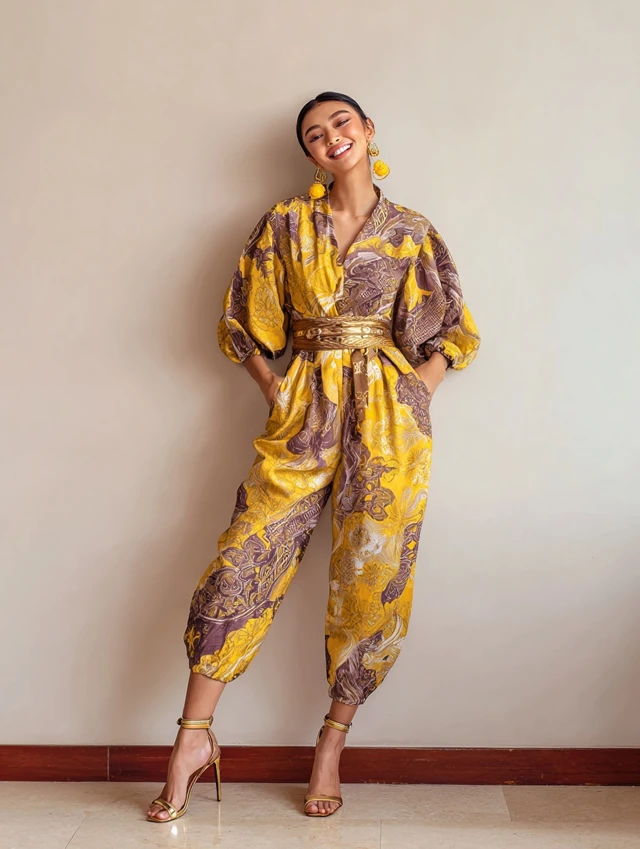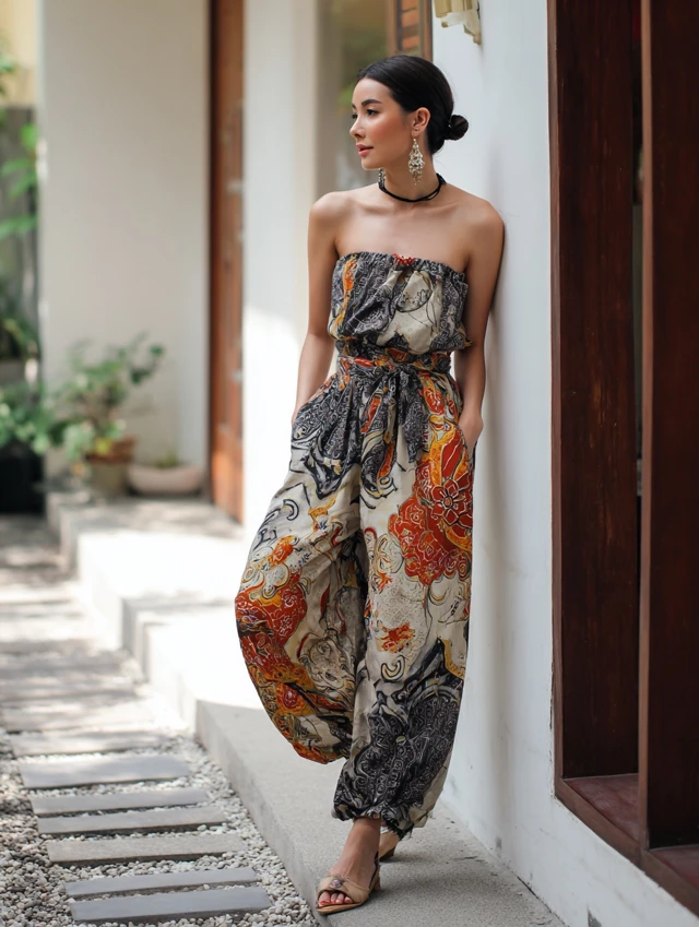 Why It Works: A Batik jumpsuit is effortless chic—combining comfort and bold design in one piece.