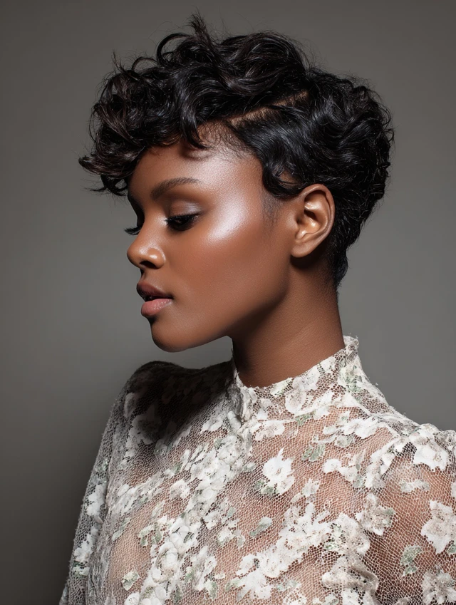 The finger-waved bixie haircut is perfect for anyone who loves retro elegance with a contemporary edge. Its structured waves, combined with the chic bixie cut, offer a versatile, sophisticated, and stylish look that’s easy to maintain.