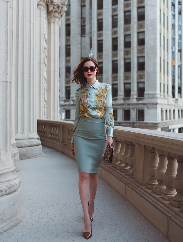 Why It Works: Feminine yet professional, this pairing blends softness with structure.