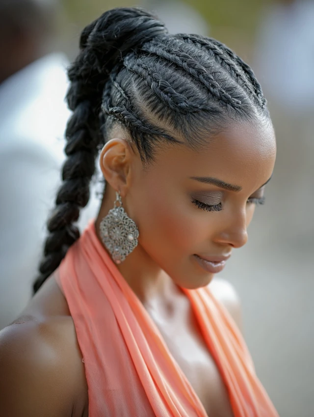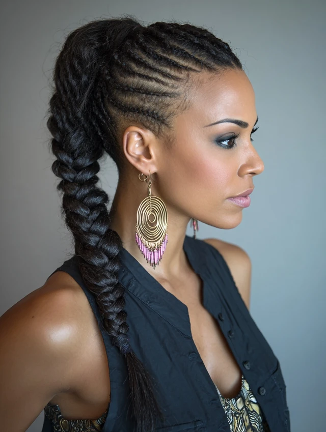 5. Cornrow Braids into Ponytail
