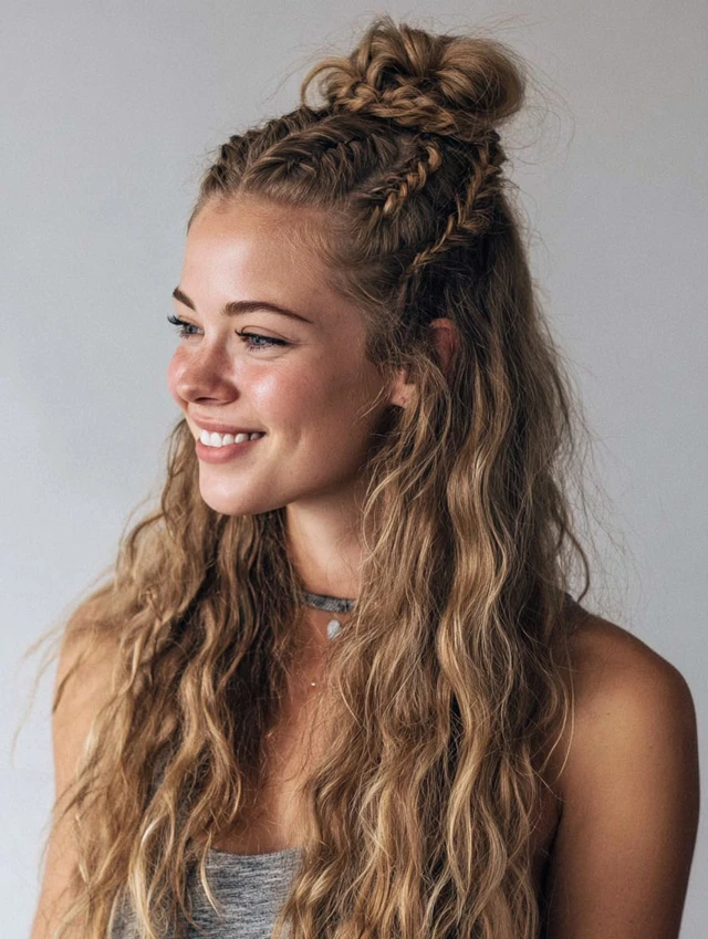 Braids, buns, ponytails, or half-up styles that stay put.