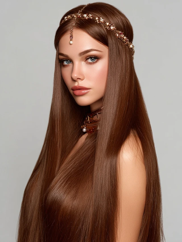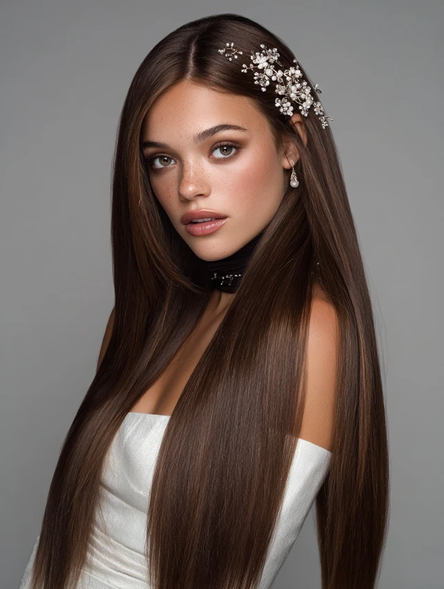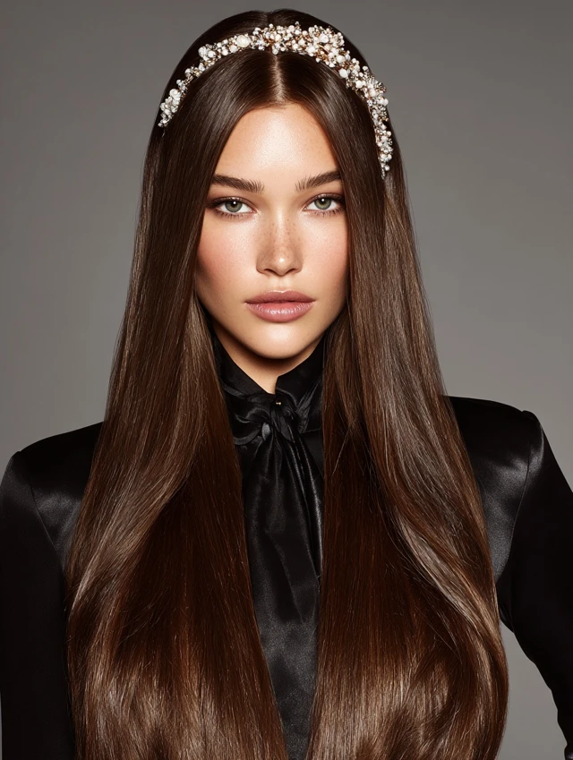 Sleek, straight long hair is polished, modern, and effortlessly chic.
