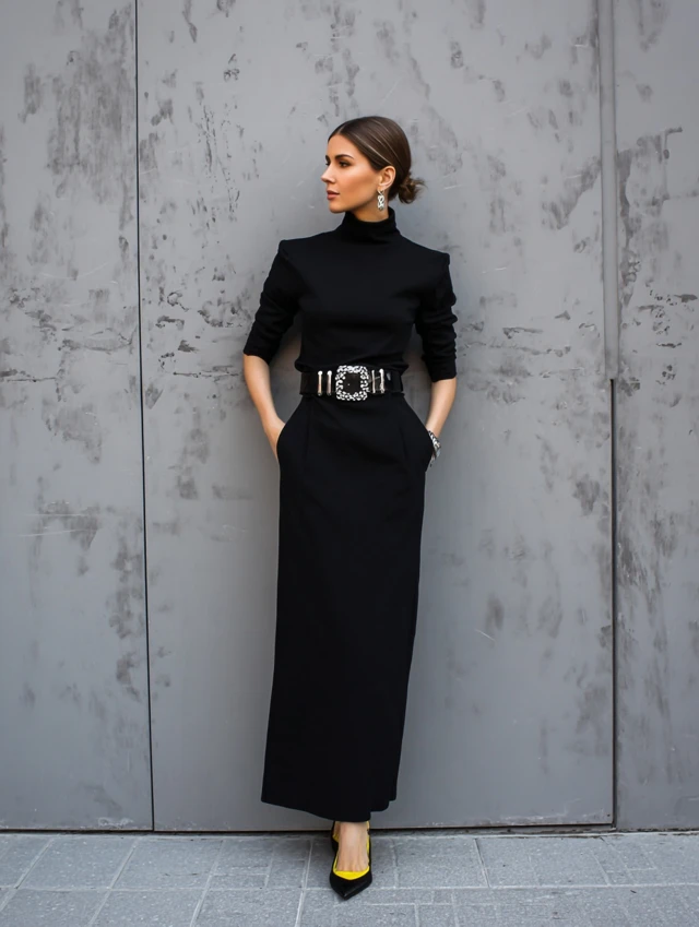 Yes, it’s black—but styling is all in the details. Layering with textures like leather, silk, or denim adds instant dimension. Want a pop of color? Bright heels, metallic jewelry, or bold bags bring vibrancy. And for all-black lovers—play with matte, satin, and velvet to keep it dynamic without losing the monochrome magic.