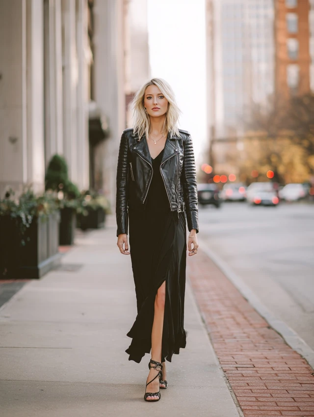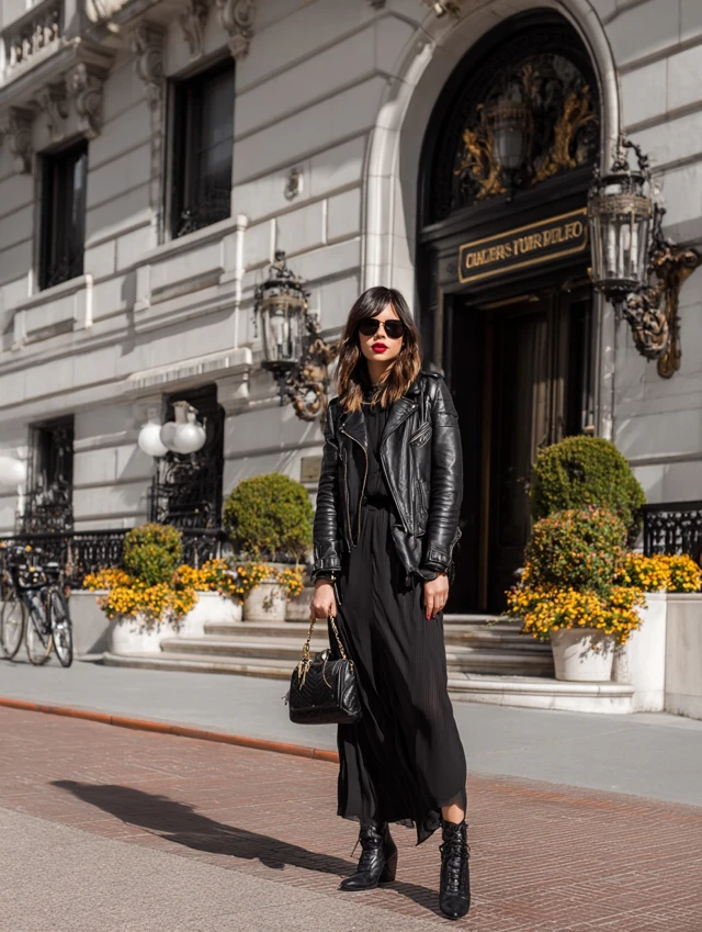 Why It Works: Edgy leather paired with the timeless LBD creates an unbeatable mix of chic and bold.