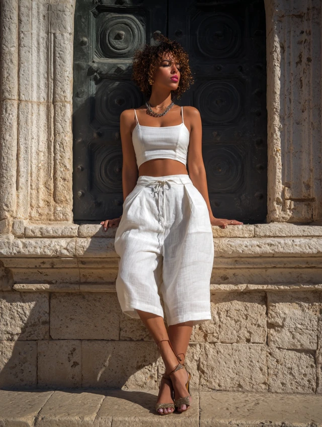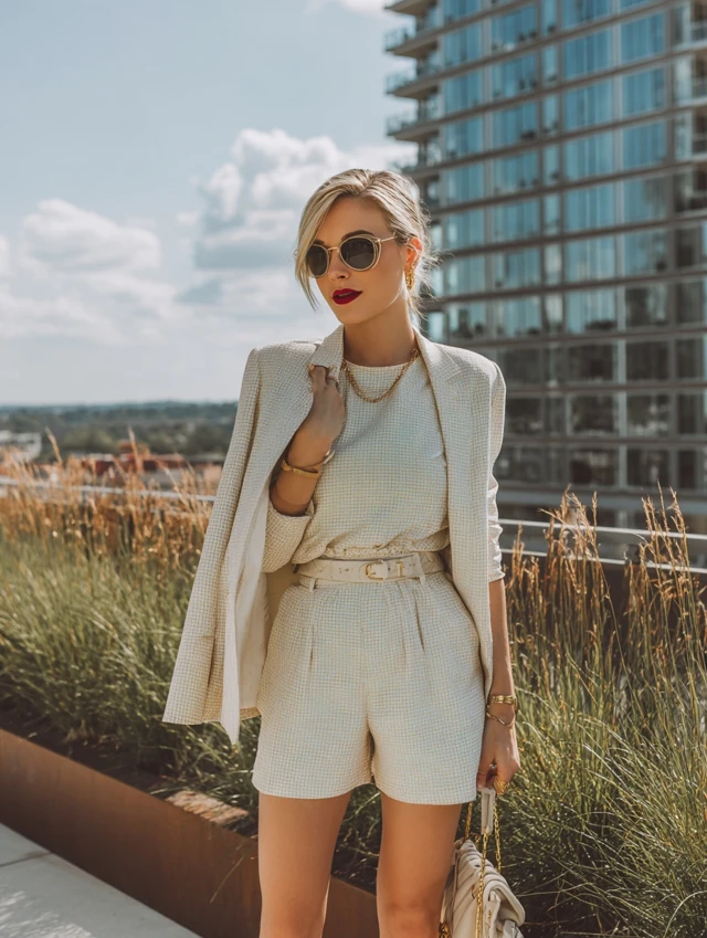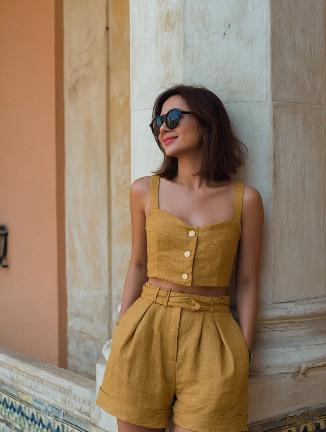 Why It Works: Light, breezy, and perfect for warmer days. The cropped top adds structure against the relaxed shorts.