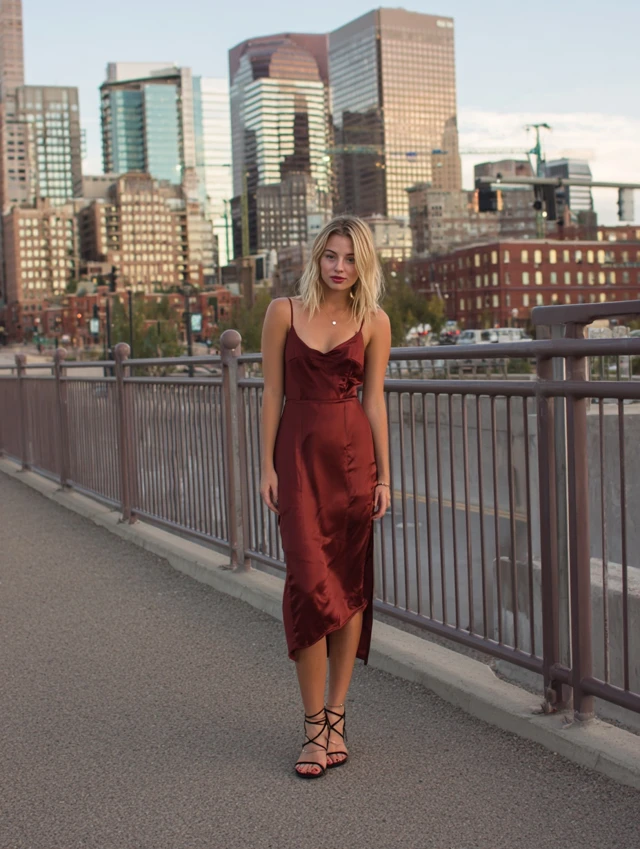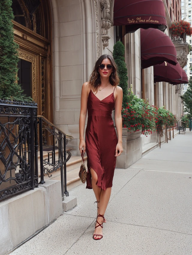 Why It Works: Minimal yet magnetic. The slip silhouette oozes elegance with little effort.