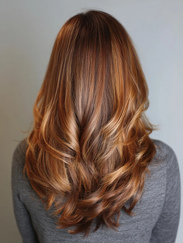 Caramel tones mixed with brown create warmth and natural depth.