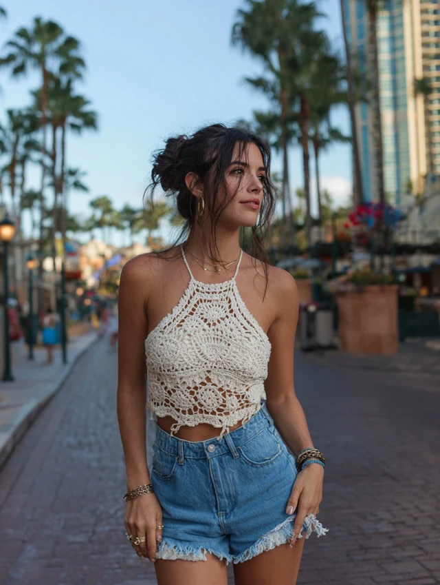 - Foundation: Breezy staples like denim shorts, maxi skirts, or rompers.