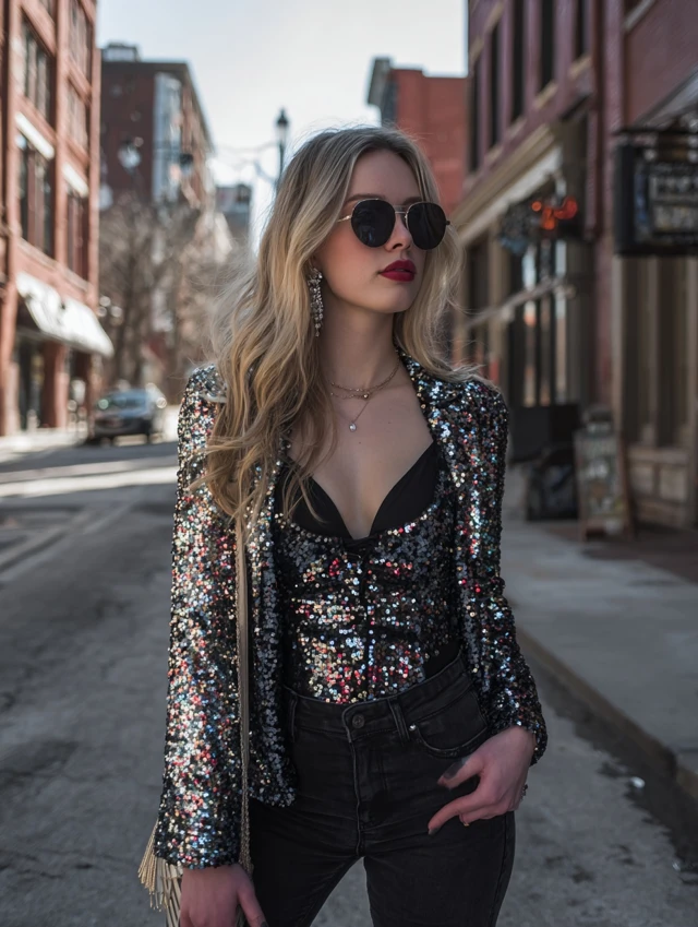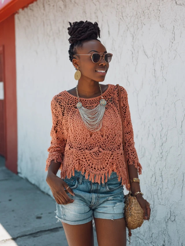 - Statement Piece: A sequin jacket, fringe kimono, or crochet top.