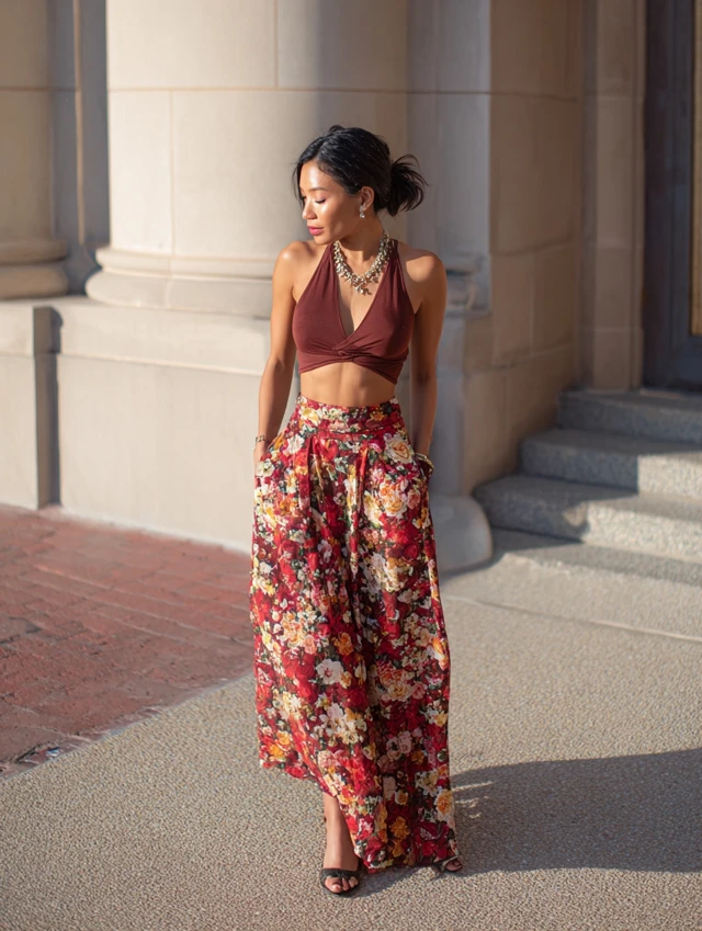 Why It Works: Flowy skirts bring drama, while crop tops keep it modern.