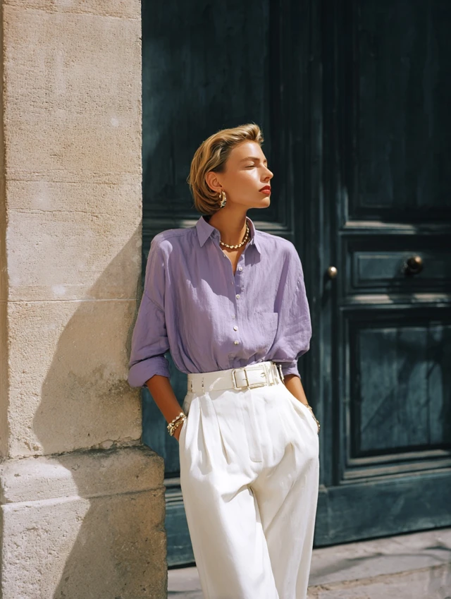 Mixing tones—like pairing light lavender with deep violet—creates a layered, fashion-editor look.