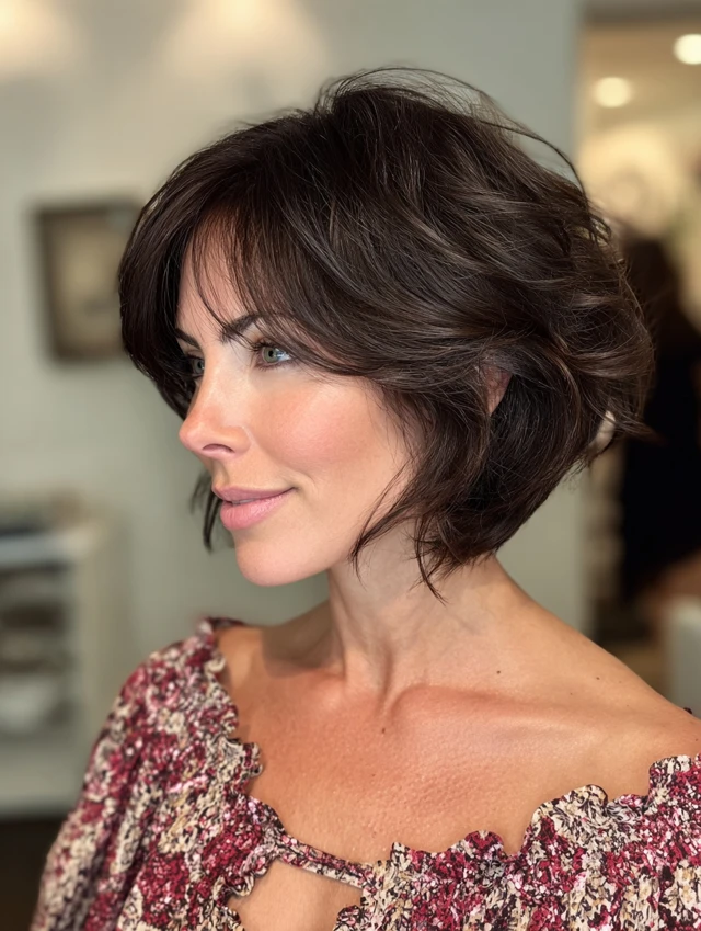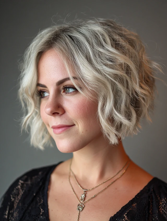 A textured bob adds movement and body, drawing attention upward and creating balance.