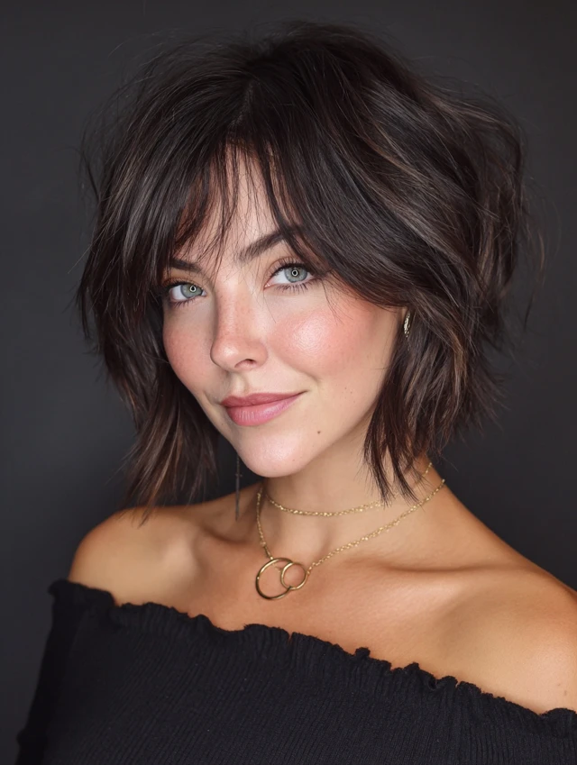 Side-swept bangs, curtain bangs, or angled layers to sculpt the face.
