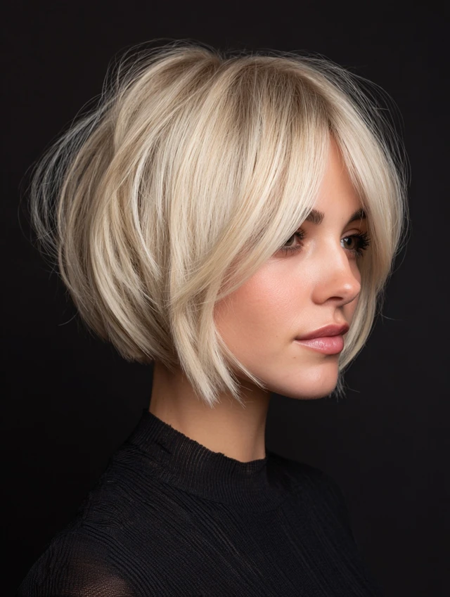 3. Soft Layered Bob with Side Bangs