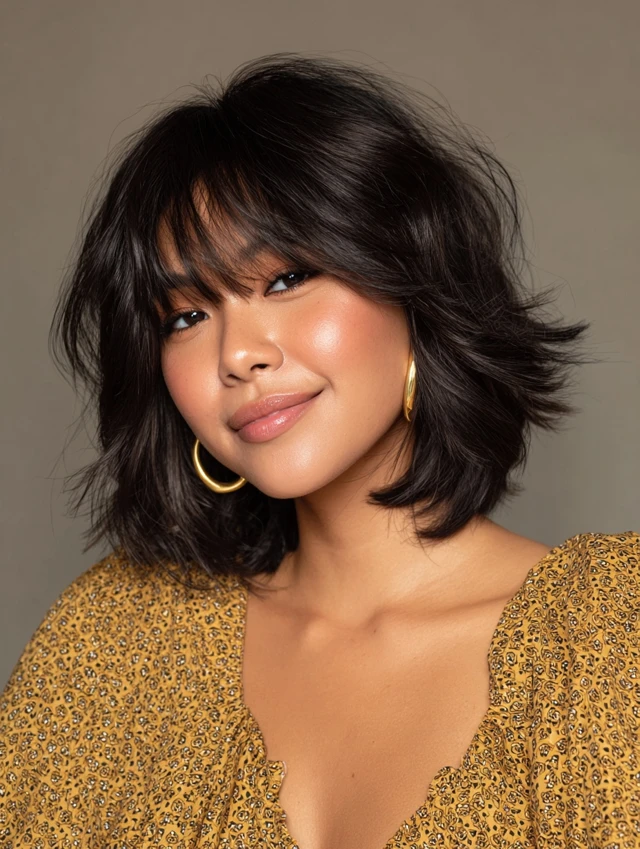 Straight, wavy, or curly hair can be styled to complement fuller faces beautifully.