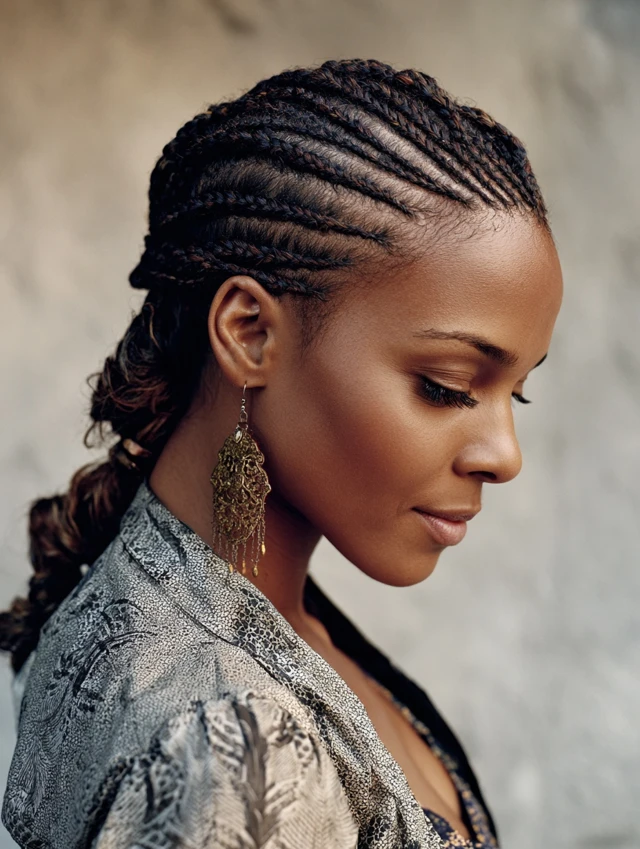 • Cornrows: Close-to-scalp braids in classic or artistic patterns