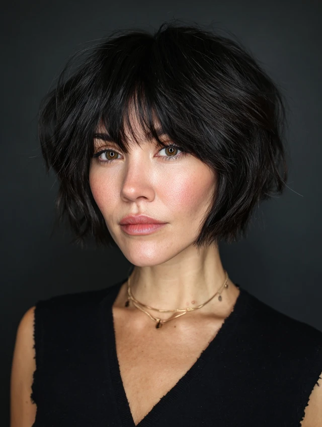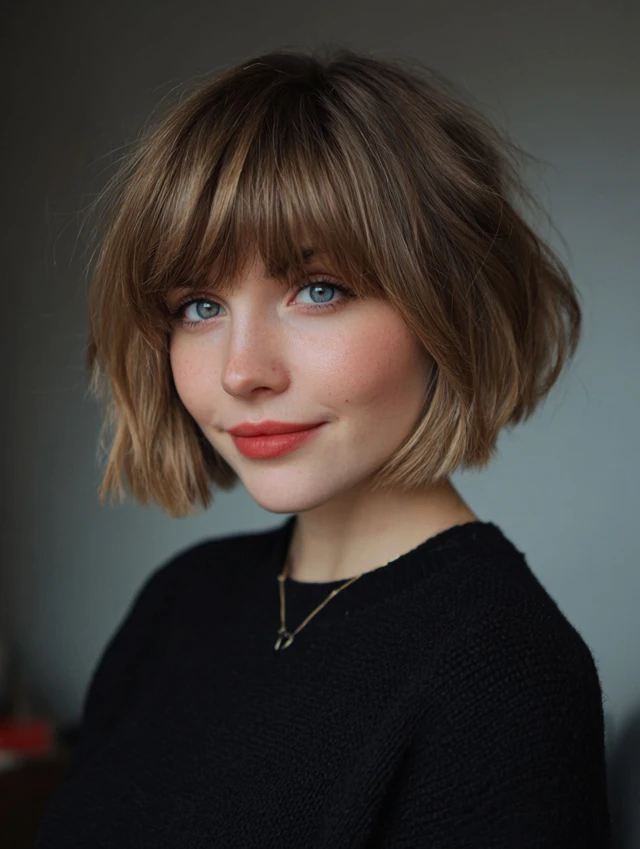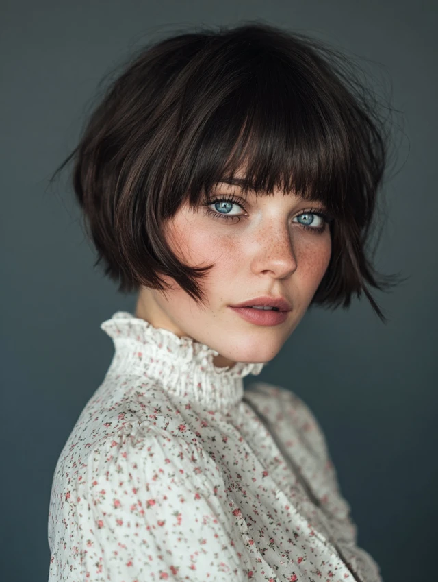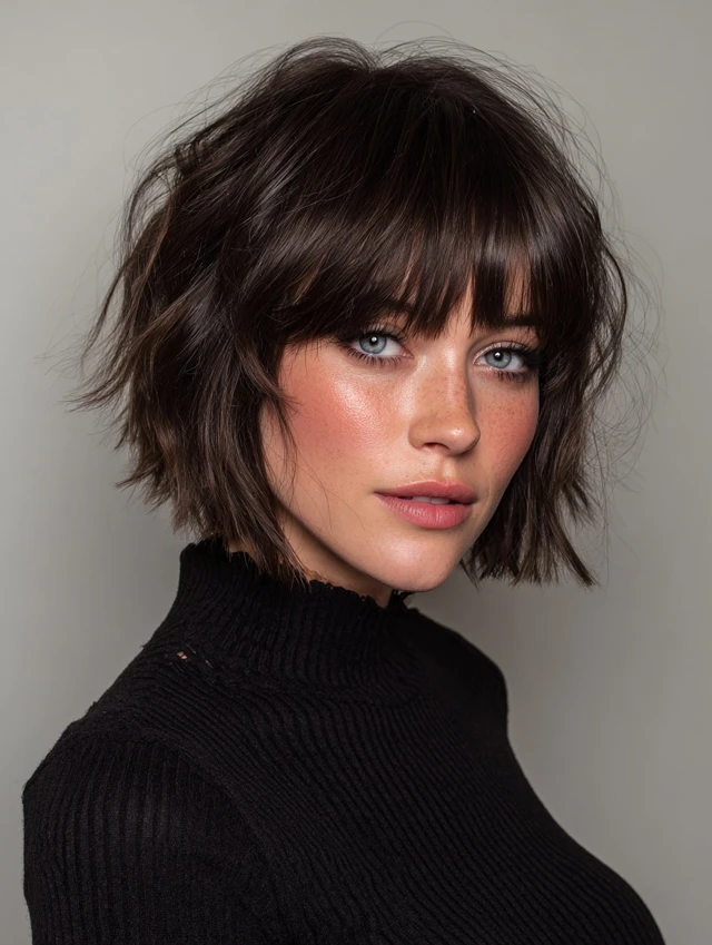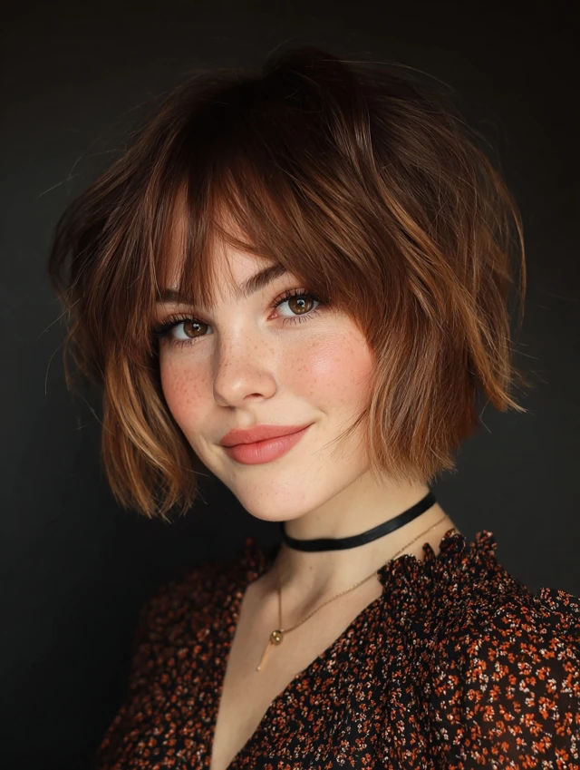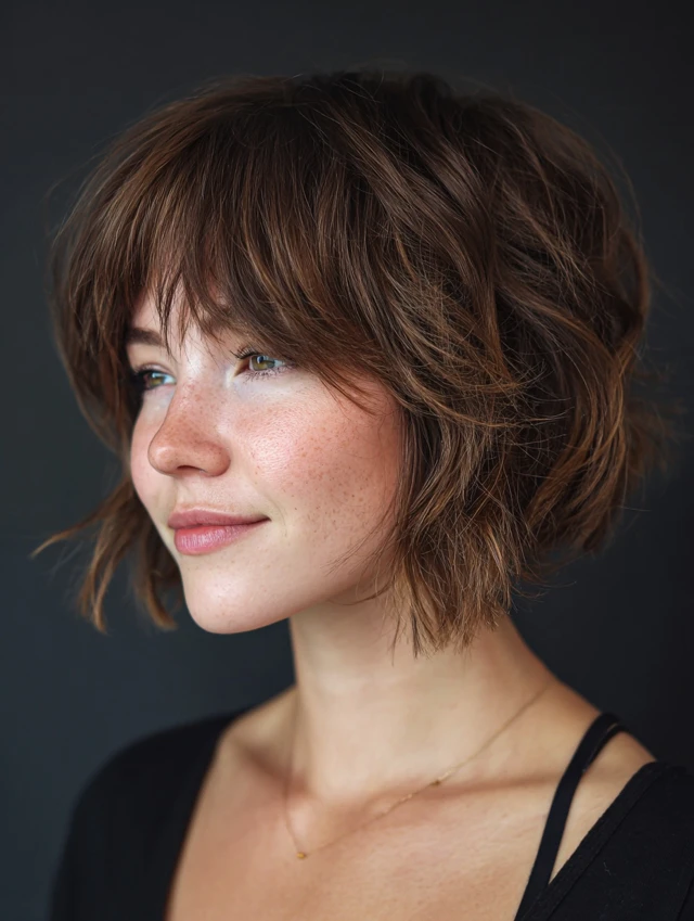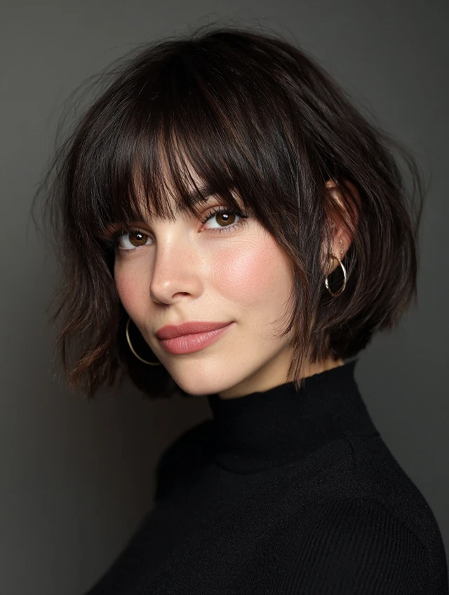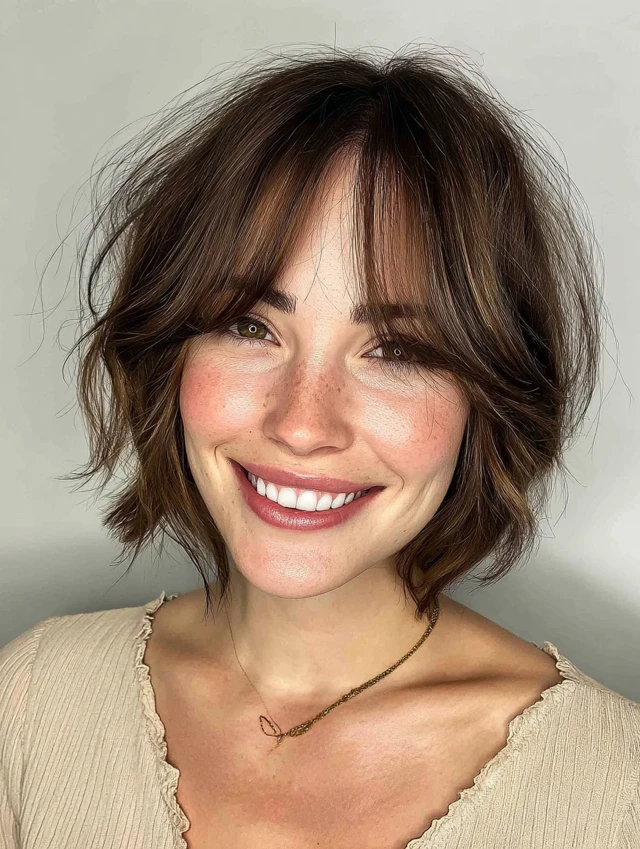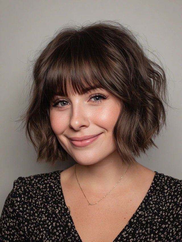 Short hairstyles with bangs help balance a fuller face and add dimension — ideal for anyone who wants a chic, low-maintenance haircut with personality.