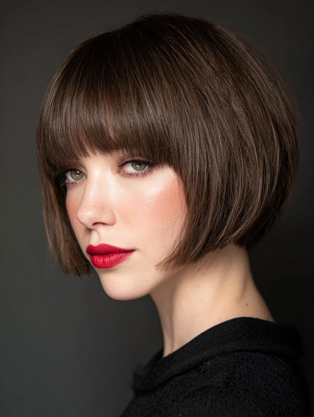 1. Classic Stacked Bob with Blunt Bangs