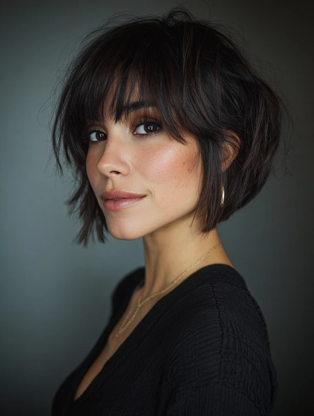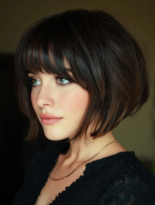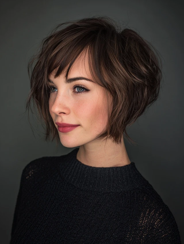 Stacked bobs with bangs give your look personality and structure while remaining simple to style — ideal for anyone who wants a chic, low-maintenance haircut.