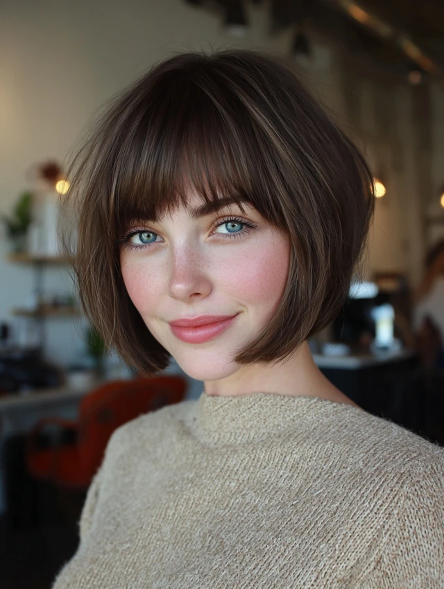 Below are cute, quick, and face-flattering stacked bob ideas with bangs perfect for everyday styling.