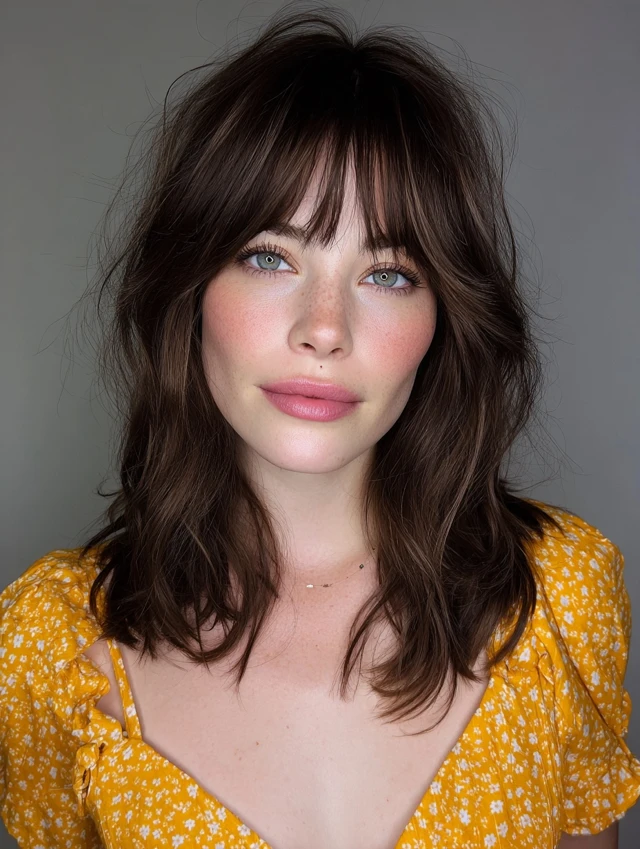 Soft bangs or face-framing pieces elevate the shag’s signature shape.